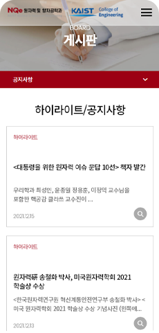 카이스트 원자력 및 양자공학과 홈페이지 리뉴얼