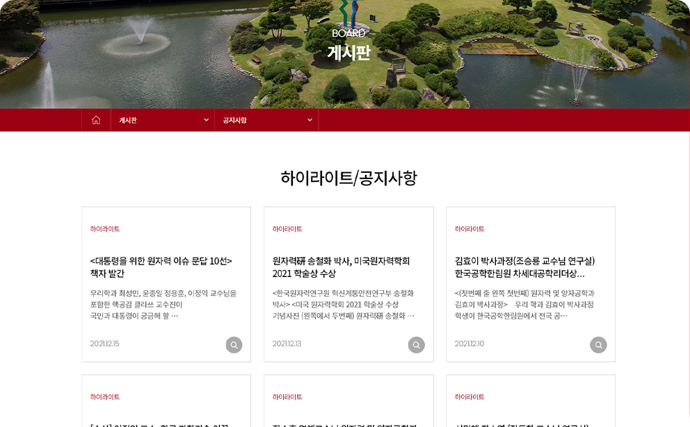 홍보영역 강화와 비주얼 영역의 다양성을 제공하여 국내 최고의 원자력공학 및 방사선 과학기술 인재 양성의 요람으로서의 아이덴티티를 강화하였습니다.