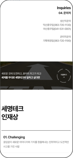 세명테크가 기술력과 혁신을 강조하는 만큼 세명테크의 기술이 들어간 제품을 직관적으로 소개할 수 있도록