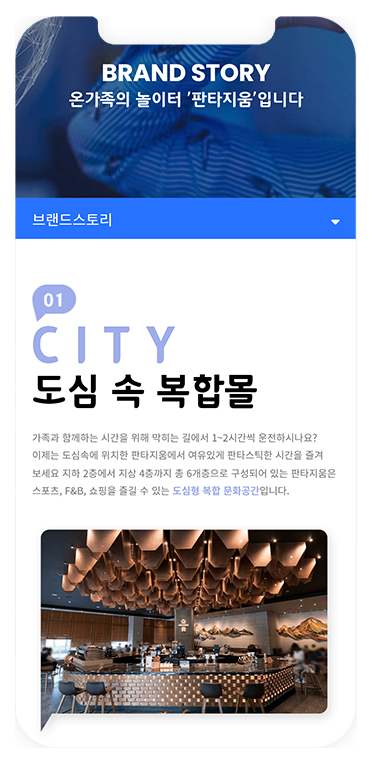 판타지움은 어른부터 아이까지 함께 즐길 수 있는 공간으로 다양한 엔터테인먼트 시설을 통해 모든 세대가 함께 어울리고 느끼는 패밀리형 놀이공간입니다. 더불어 취향에 맞게 선택할 수 있는 다양한 F&B 업장을 운영하고 있어 먹는 즐거움도 함께 하실 수 있습니다.