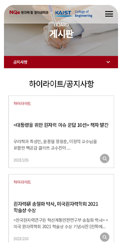 카이스트 원자력 및 양자공학과 홈페이지 리뉴얼